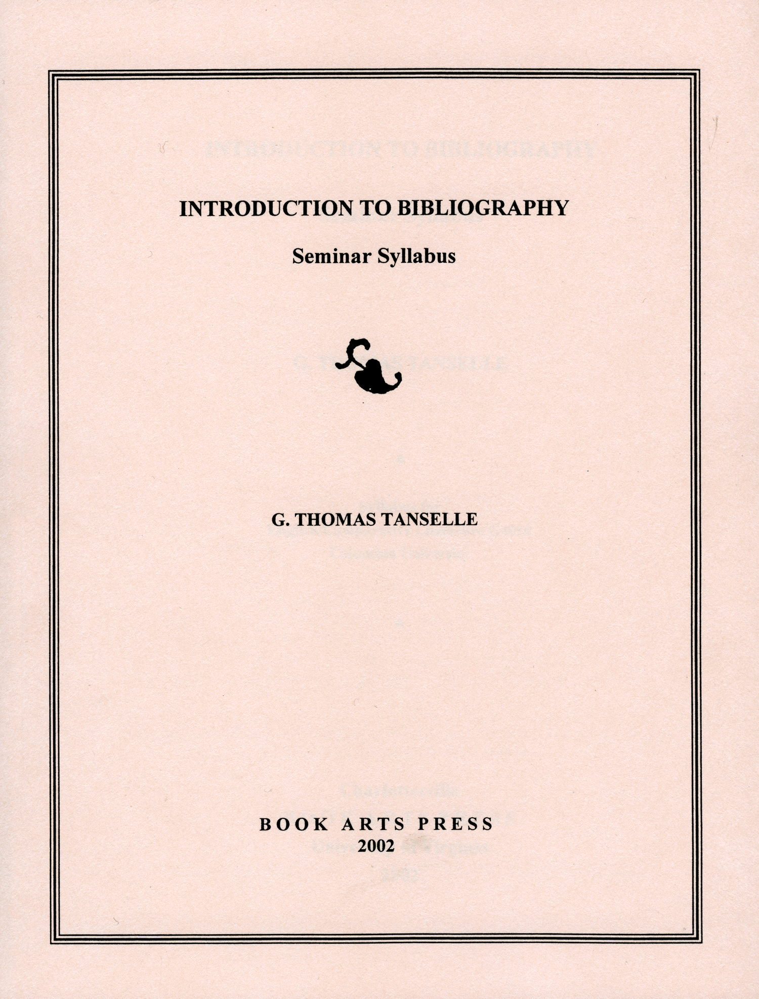 The cover of Tanselle's Introduction to Bibliography Seminar Syllabus