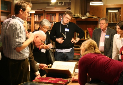 Students gather around a book in the Walters Museum in January 2011.[10 October 2011] Rare Book School is currently accepting applications for The Book in the Manuscript Era, taking place 9-13 January at the Walters Art Museum in Baltimore. The course, which was last taught by Barbara Shailor in 2008, will be taught by Walters Manuscripts Curator Will Noel. Covering the period from late antiquity to the beginning of the c16, this is the first course in a three-part book history sequence that includes The Printed Book in the West to 1800 (H-30) and The Printed Book in the West since 1800 (H-40).