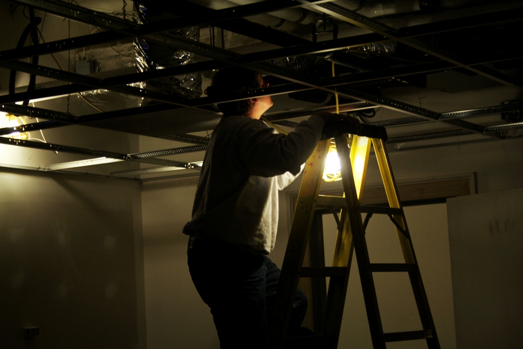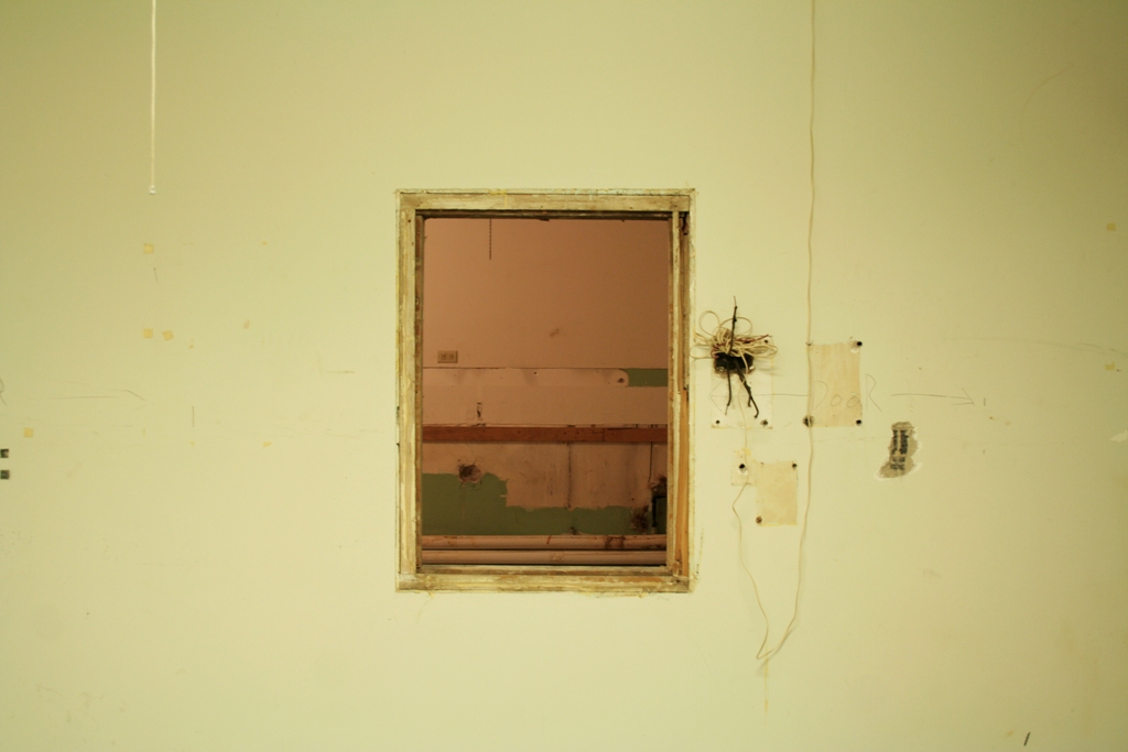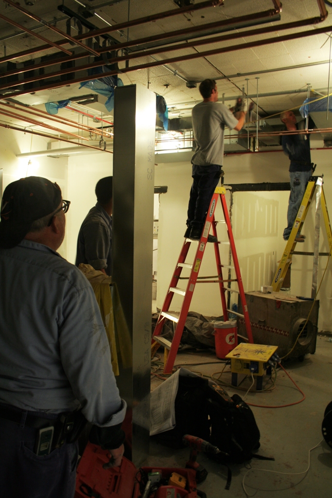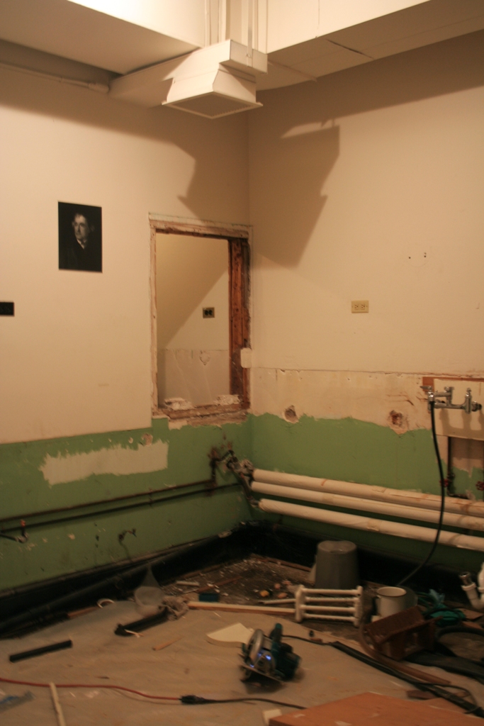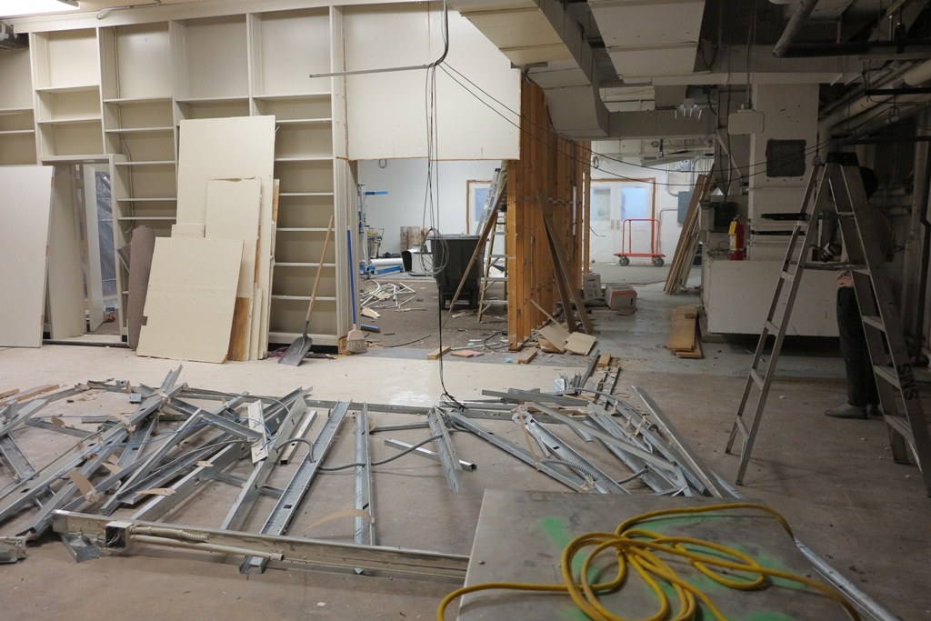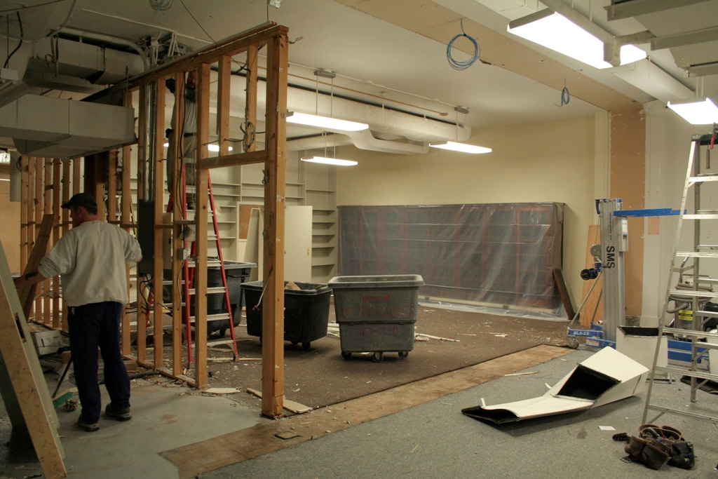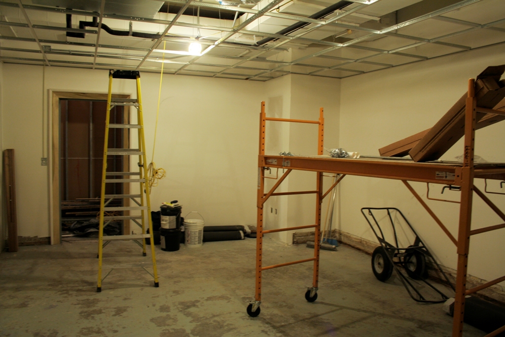The vestibule and hallway, with walls installed (looking into Seminar B). |